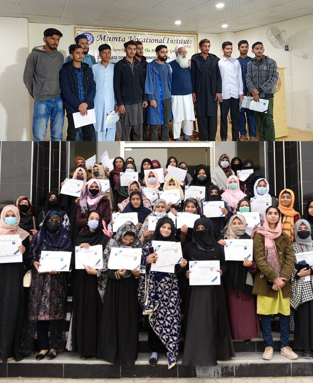The technical institute being built in Mirpur, Azad Kashmir, Institute has been completed and the courses in various technical and IT trades have started. Initially 12 courses were advertised and the most popular with respect to applications were beautician, Tailoring / dress making, basic computing, website and Graphic designing courses. In the first batch 30 students enrolled and 28 successfully completed the courses. In the second batch 95 students enrolled and successfully completed their respective courses. From the feedback it was learnt that because of the training received at Mumta Welfare Institute, 19 students from the first batch and 23 students from the second batch have successfully obtained employment or are working from home.